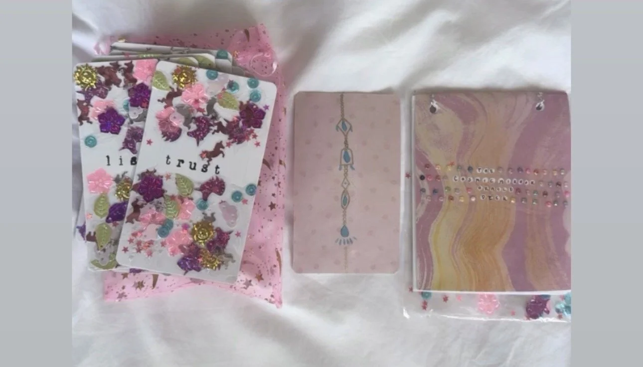 Each 44-card oracle deck is reiki infused and uniquely crafted, handmade and designed with the healer in mind. No two decks are alike. One of a kind deck for a one of kind you. With your energy and intention at the forefront of this deck, each card is thoughtfully designed and energetically charged to support your intuition and spiritual growth. Being infused with gentle Reiki to bring clarity, comfort, and cosmic guidance into your everyday life. Each deck also includes a mini guide for a simple, supportive explanations and prompts to help you connect with each card—perfect for beginners and still deeply supportive to the more experienced.
